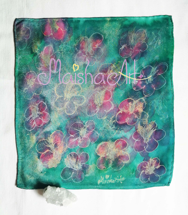 Vsak svilen robček je unikatno ročno poslikano umetniško delo, popolno za tiste, ki cenijo lepoto, ustvarjalnost in eleganco v vsakem detajlu.