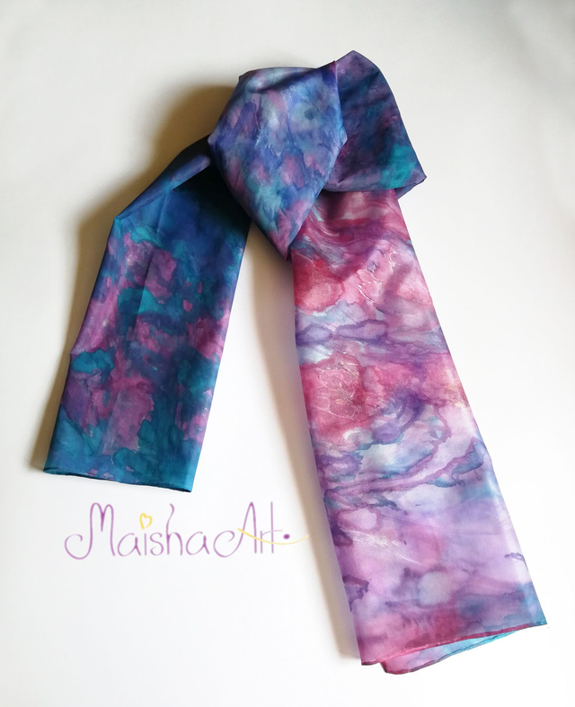 Vsak šal je unikatno poslikan in ročno zarobljen, zato ni le modni dodatek, temveč izraz ljubezni do umetnosti in narave. Popolno darilo za ženske, ki cenijo lepoto, nežnost in edinstvenost v vsakem trenutku.