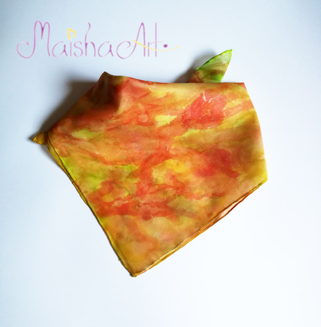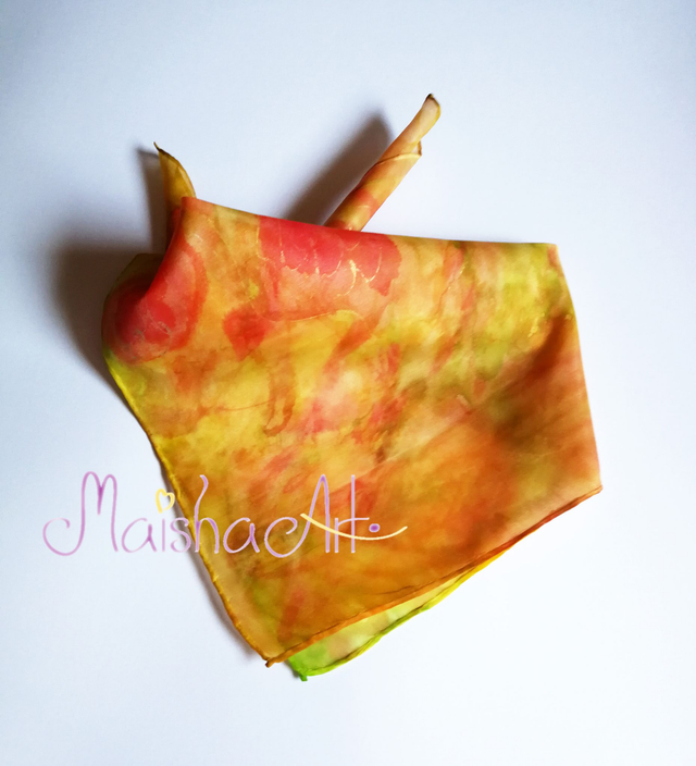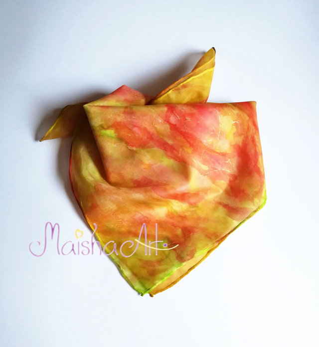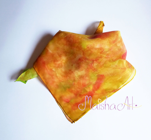 Navodila za nego: Nežno ročno operite v hladni vodi z blagim praškom za svilo. Ko je ruta še rahlo vlažna, jo zlikajte na programu za svilo, na hrbtni strani poslikave.